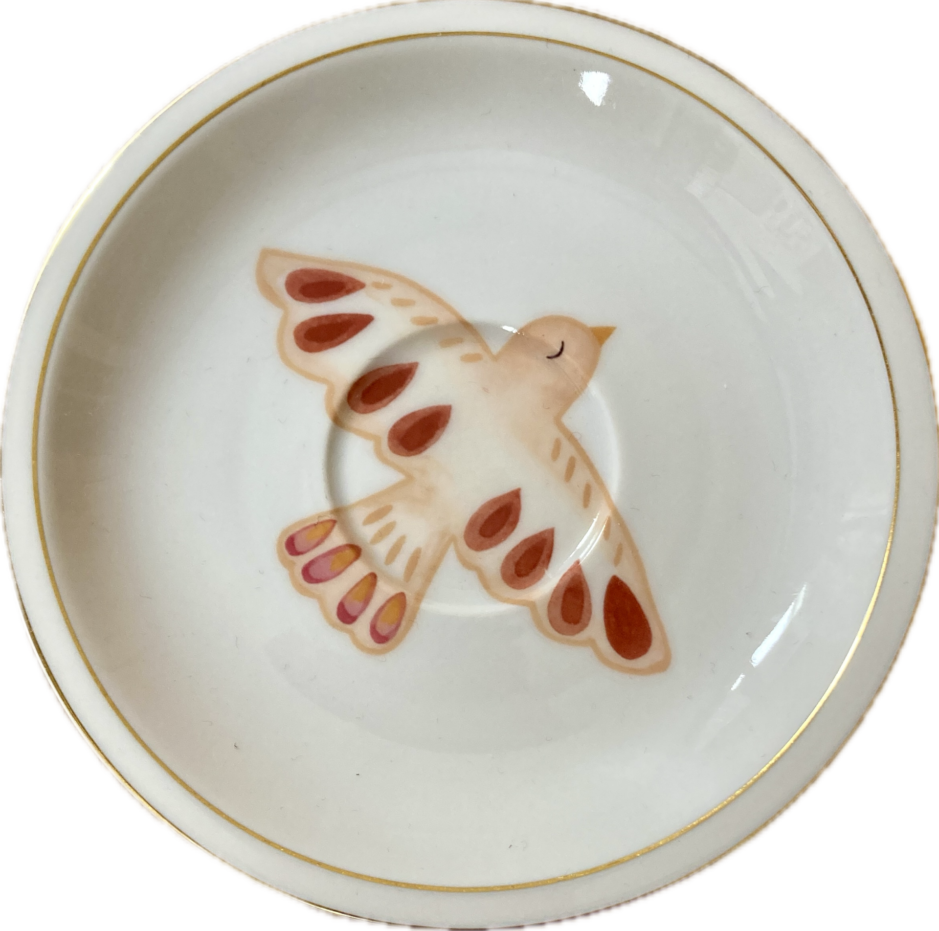 Vogel op schotel met gouden randjes